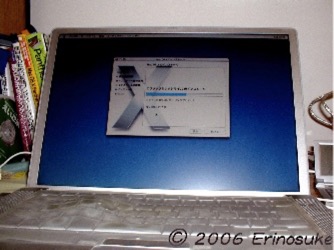 写真5:新規インストール中.この後のデータ転送とセッティングがまた面倒.六角ドライバー探しとツメ強引外しという,マニュアルのポイントと全然関係ないところで手間取ったHD交換であった.とりあえず動いてるのでホッ.音もクラッシュ前より静かになった.だがプロセッサと電源付近にあるらしい温度センサーが,若干高めを示す気がする.