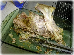 そんなこんなで丸焼きターキー,骨だけになった(写真3枚目).いや実際は身も付け合わせも山ほど残っている.「Thaksgivingおせち」として,この連休は毎日朝昼晩3色ターキーに決定である.