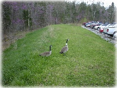 なので研究所には動物がいっぱい.写真一枚目のGroundhog(Woodchuck)も建物のそばに穴を掘って定住している(らしい)し,七面鳥やガチョウ(写真2枚目;これはガチョウ?)も普通に歩いている.時々カルガモ親子の様に道路を横断し,車が列をなして通過を待つというほほえましい光景も見られる.