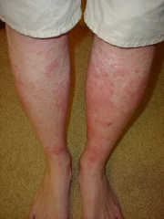 医者(assistant physicianであった)に「あなたのはちょっとmiserableだわ」と言われ,ステロイドの注射を受け,塗り薬を処方される.が,注射のリバウンド(おそらくすでに足に傷があり,感染症を起こした)で翌日から足がますます腫れ,真っ赤に.かゆみもひどくなった.再度皮膚科に行き,今度は消炎剤とステロイド,胃薬を処方された.計3回通院,完治に3週間ほど.かゆみが消えるのに2週間程度.