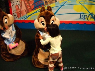 一方娘,「人間」の係員の人には非常に愛想が良い.自分から話しかけたり,おどけたり.なのにどうして,夢にまで見たディズニーキャラにはもじもじ君なのか.