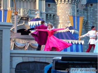 13. シンデレラ城前でのショー.個人的にはオーロラ姫が一番好きなキャラ.娘もこれは大喜び.