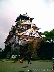 絢爛豪華な大阪城天守閣,オリジナルは大阪夏の陣で燃えちゃって,その後に徳川さんが土台から変えてもっと大きい天守閣を造ったそうである.それがまた無くなってしまって,現在のは徳川・豊臣折衷の天守閣だそうな.