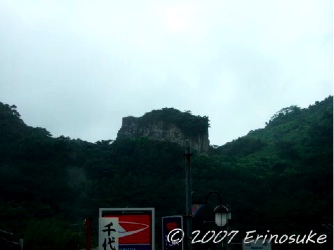 1.行く道で見えた面白い形の岩.周りの山も土砂崩れが多そうだ.