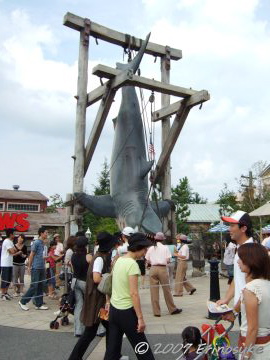 6. jaws の逆さ吊り.ここで記念写真を撮ってくれる.後ろにはjawsのアトラクションが.夫と弟曰く,イマイチらしい.