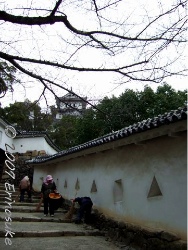 天守閣まではその回りをぐるぐる,ひたすら上る.敵の兵や騎馬の侵入を拒むためだそうな.壁の穴は狙撃用かな.