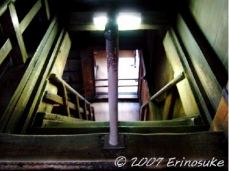 急な階段が,いかにもホントの城っぽい.いや本物なんだけど.頭打ちそうな傾斜.