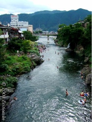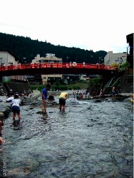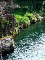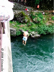 吉田川の橋からの飛び込み は有名だそうである.元は地元の若者の通過儀礼みたいな物か.上級者向けと少し高さの低い初級者向けの橋があるそうな.どっちにしろ,身が竦むような高さ.飛び込めばヒーロー.