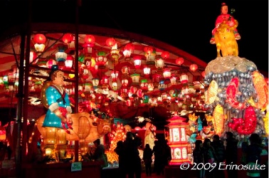 湊公園のランタン会場.毎年少しずつゴージャスになっているようないないような.電飾は本場中国から購入していると聞いた.
