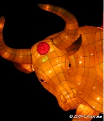 噴き上げる水の上を歩く像.何か由来のある意匠なのかな,と思ったら,ちゃんとサイトに書いてあった.新作オブジェで「金牛」だそうだ.