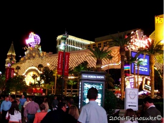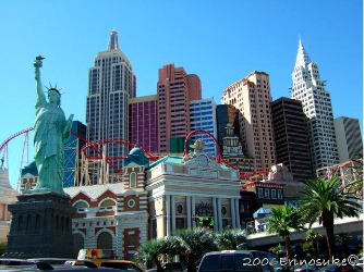 建物が古くなると,集客率が落ちる.宿泊料を下げざるを得ない.泊まってくれないと,ロビーのカジノも儲からぬ.なので,いっそ古い建物は爆破して,まるきり新しいのを建てるそうな.この時も1ー2カ所建築中.現在,Stripで一番新しくて高級なのはWynn Las Vegas .近代的な建物で,写真を撮るには今イチ面白みが無いが,洒落ている.電動カーテンとか,部屋もゴージャスらしい.しかもゴルフ場併設.