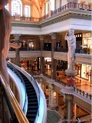 16&17.Caesars Palaceに繋がるショッピングアーケードForum Shopsの内装.エスカレーターから柱から天井から凝った作り.