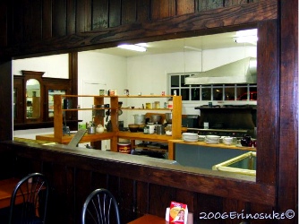 10.当時のオープンキッチンを再現.手前はホントの客席.