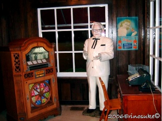 このサンダースさん,最初は車ブームに目を付けて,当時交通の多かったUS25沿い,この付近で,ガソリン・スタンドとモーテル,このレストランを始めたそうな.が,I-75が開通すると共にお客が減ってしまった.